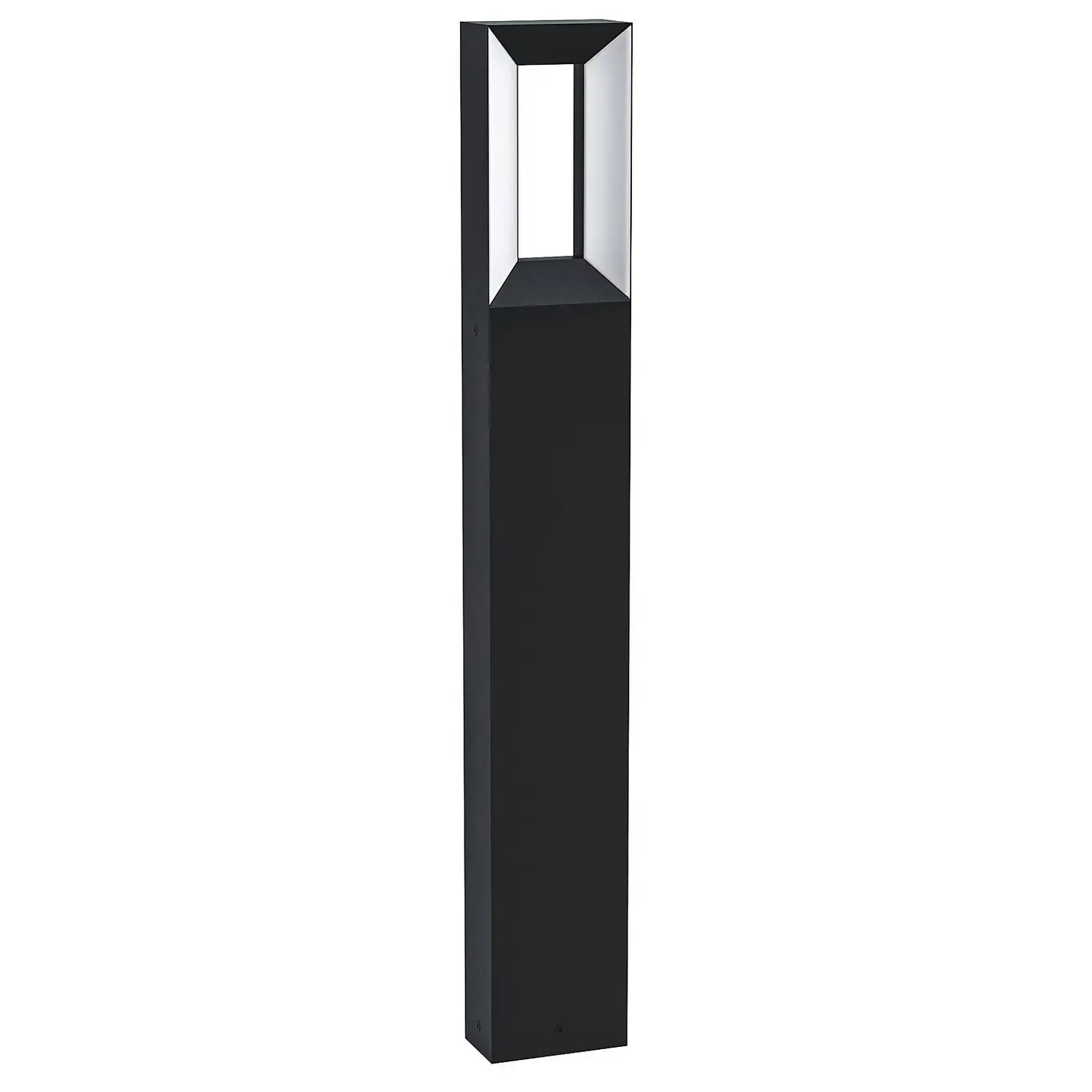 The product is a rectangular shaped outdoor floor lamp in black cast aluminium. The product has white plastic diffusers and integrated LED components which produce a warm white light when illuminated. With its modern design and IP44 rating, this is a great solution for outdoor ground lighting.