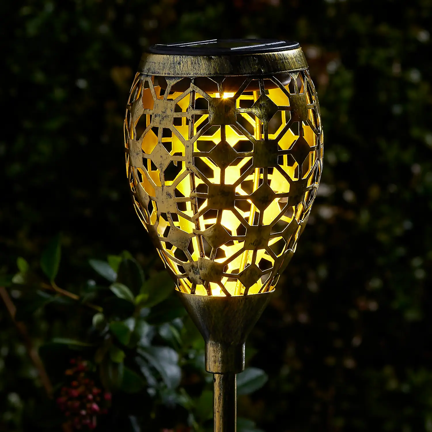 This elegant Solar Moroccan Stake Light, is the perfect way to add character and style to your garden or outdoor space.